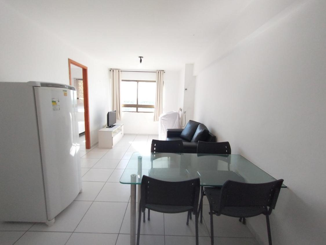 Flat completamente mobiliado (sofá, Tv, mesa com 04 cadeiras, fogão, geladeira, micro-ondas, máquina de lavar, cama box casal, ar condicionado no quarto, cortinas na sala e quarto). Apartamento no 8º andar, antena coletiva, WiFi, piscina, churrasqueira, salão de festas, portaria 24 horas, lavanderia coletiva, central de gás, gerador.