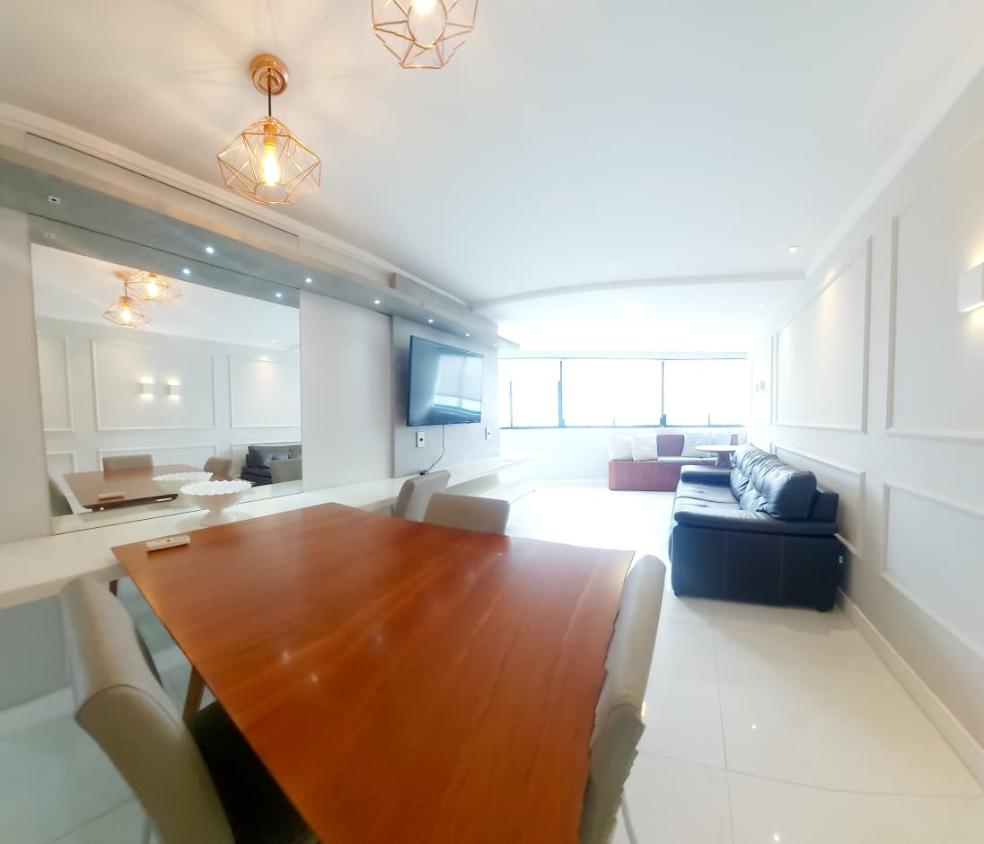 Apartamento mobiliado com 82m² muito bem dividido entre sala para 2 ambientes, 2 quartos sendo 1 suíte, cozinha, área de serviço e dependência de funcionária.